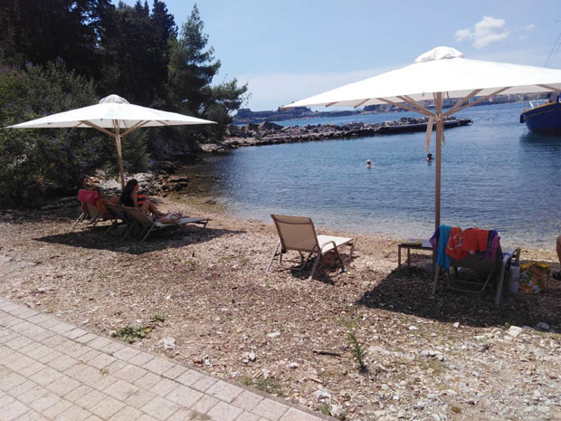 Ležaljke i suncobrani na plaži u glavnoj luci ostrva Vido, odakle počinje prilaz Spomen-kosturnici srpskim vojnicima iz Prvog svjetskog rata uklonjeni su u ponedeljak.