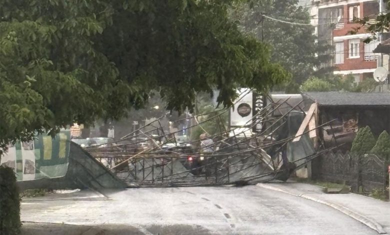 Sa jednog gradilišta u Doboju jak vjetar oborio je skelu na putničko vozilo.