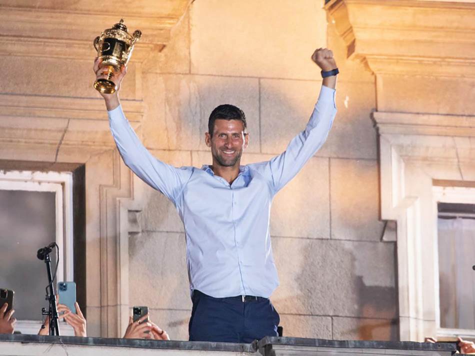 Doček je upriličen ispred Skupštine grada Beograda, a brojni navijači i poštovaoci Novaka Đokovića okupili su se kako bi ga dočekali i pozdravili.