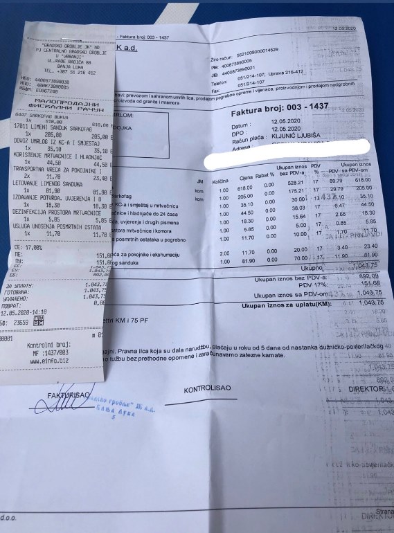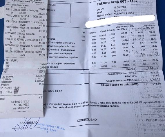 – Igrom slučaja i ja se bavim tim poslom i u opremu te vrste se razumijem. Da je neki laik bio, mislio bi da to tako treba, ali ja vidim da je to pogrešno. Ako izuzmemo oko 200 KM, koliko koštaju njihove usluge, vidim da je takav bukov sanduk mnogo skuplji nego u radnjama u kojima se prodaje, i u kojoj ja radim, rekao je on, naglašavajući da je cijena najmanji problem s obzirom na traume koje je porodica doživjela u ovom slučaju.