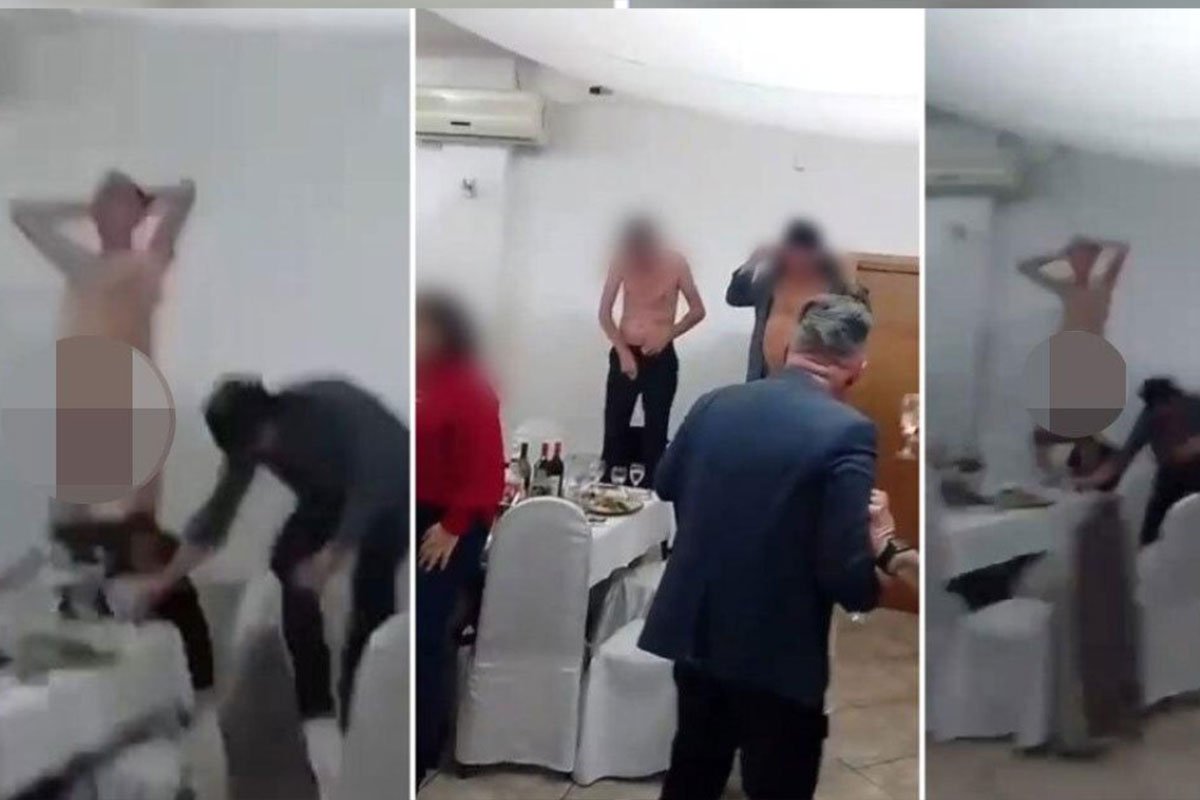 Snimke sa proslave proširile su se društvenim mrežama. Na videu se vidi gost koji se penje na sto, spušta hlače i pleše go dok ga dio okupljenih bodri smijehom i povicima, prenosi Index.hr.