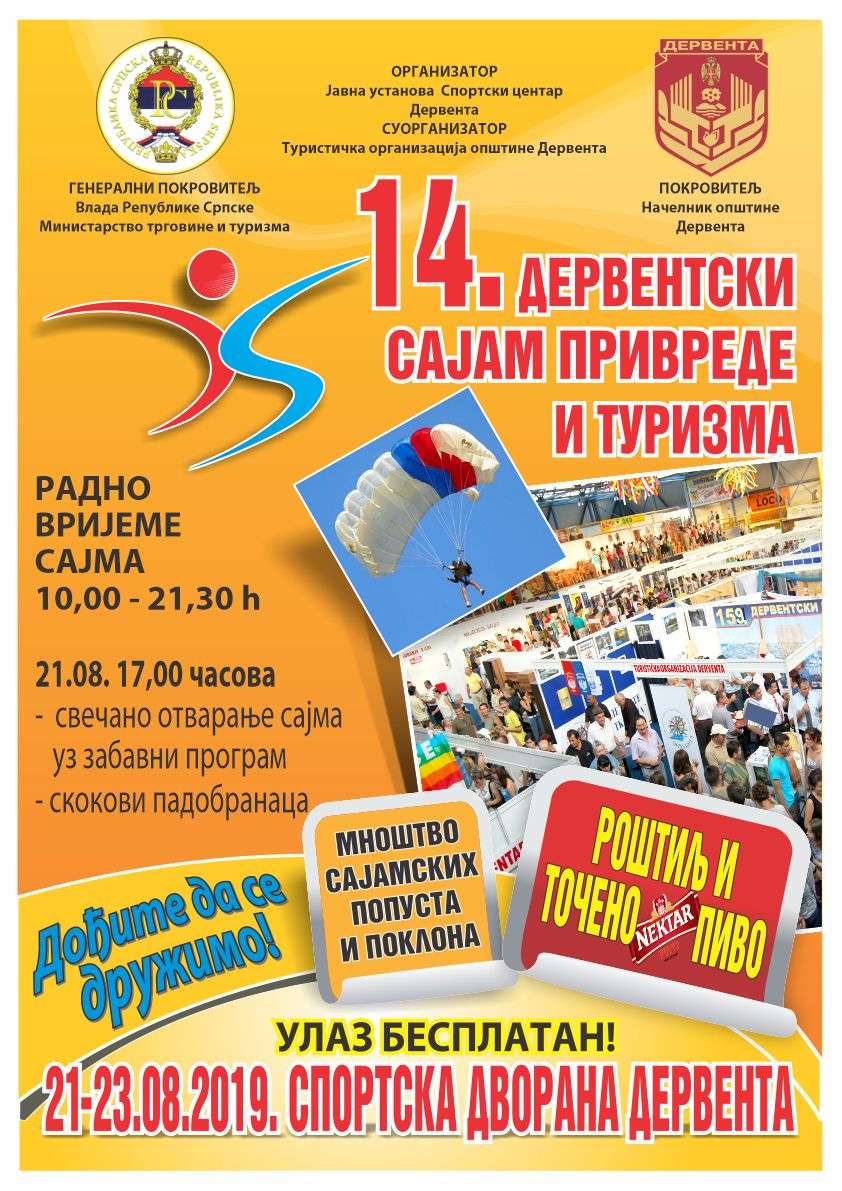 U sklopu 168. Derventskog vašara u prostoru Sportskog centra Derventa u periodu od 21. do 23. avgusta 2019 godine J.U. Sportski centar Derventa organizuje 14. derventski sajam privrede i turima.
