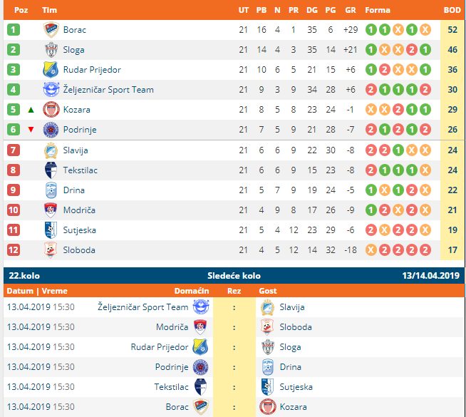 Na ovaj način izabranici Danimira Milkanovića i dalje su teoretski u igri za plasman među najboljih šest, iako će u praksi to biti teško izvodivo. U zadnjem kolu regularnog dijela prvenstva, pored trijumfa nad Sutjeskom, potrebno je da se “poklope” i rezultati sustreta Željezničar – Slavija i Podrinje – Drina.