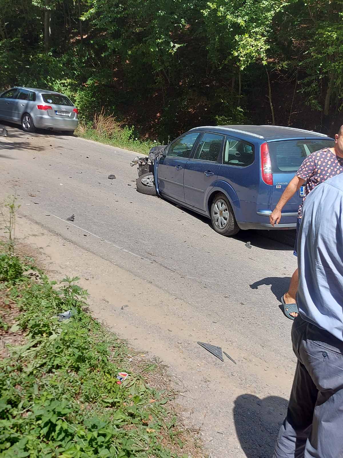 Dva vozila su se sudarila, nakon čega je jedno sletjelo u kanal pored puta i udarilo u banderu.