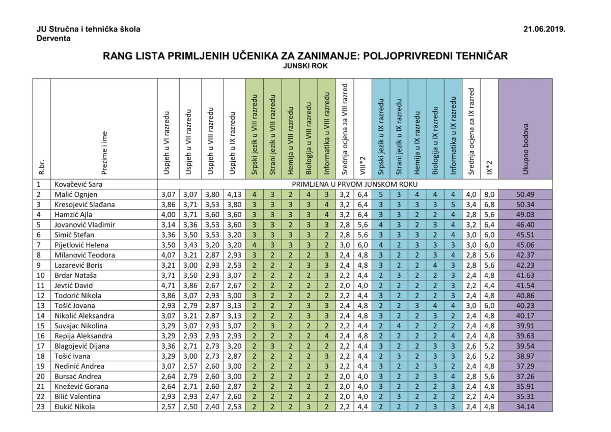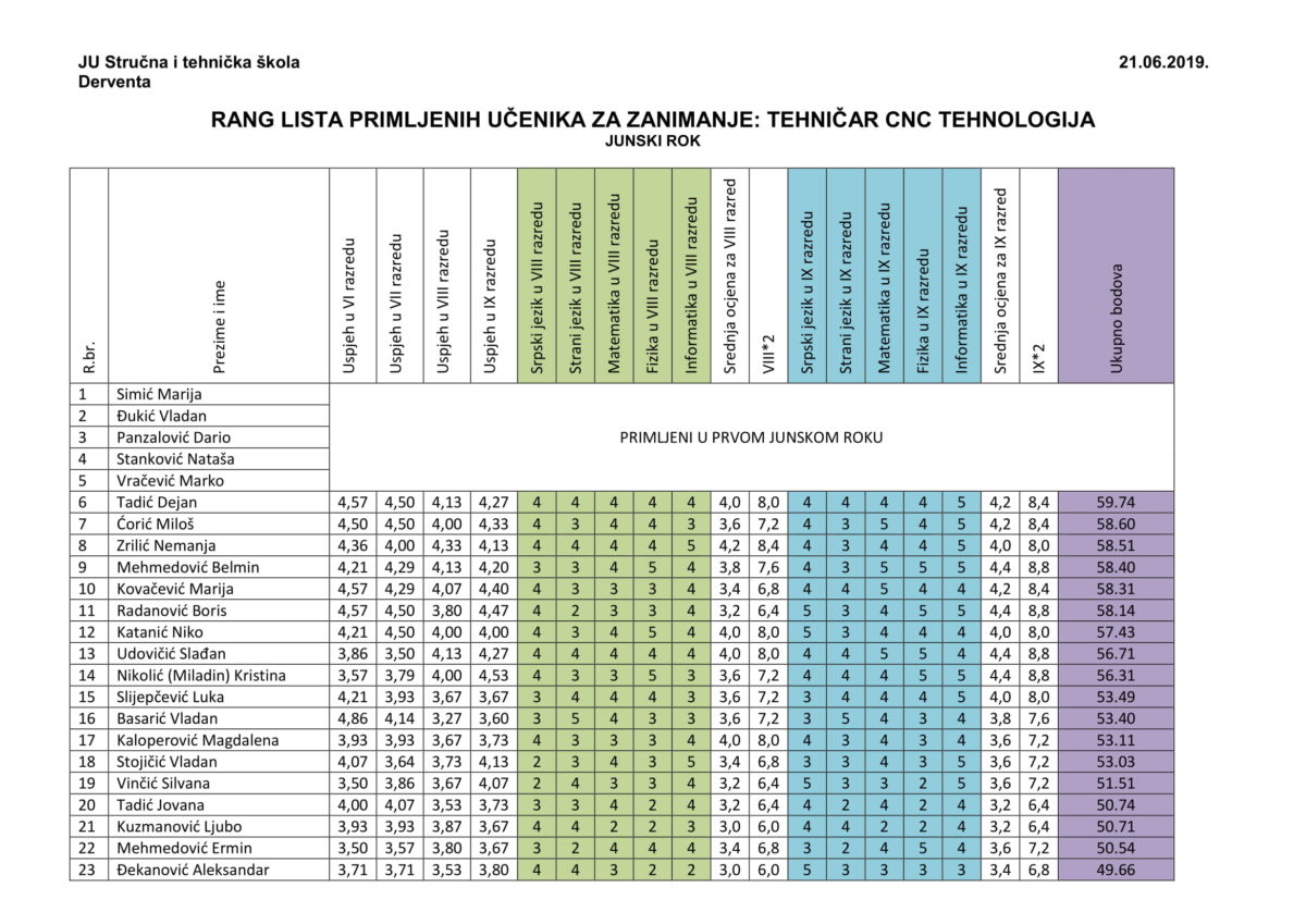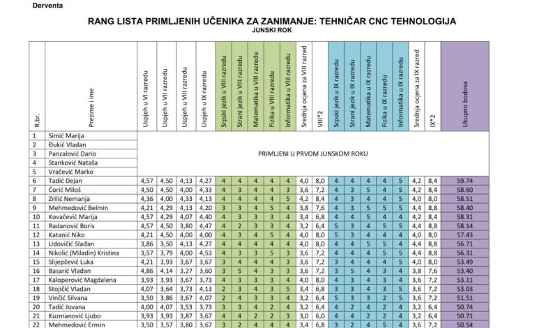 Stručna i tehnička škola: Završen junski upisni rok, donosimo rang-liste