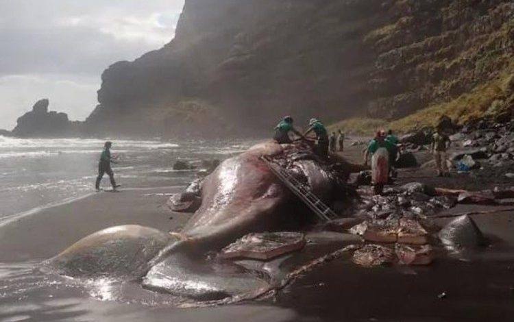 Rodriges, koji je izvršio više od 1.000 autopsija tijela kitova, rekao je da je, pregledajući tijelo sisara, vidio da se nešto čvrsto zalijepilo na debelom crijevu, prenosi Gardijan.