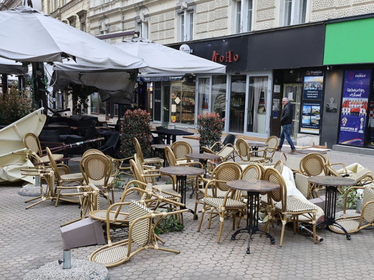 Na zagrebačkoj Kustošiji pala je skela sa visine drugog sprata na obje kolovozne trake, a u više ulica glavnog grada vjetar je obarao stabla. Nisu radili tramvaji jer je jedno stabilno oštetilo naponsku mrežu.