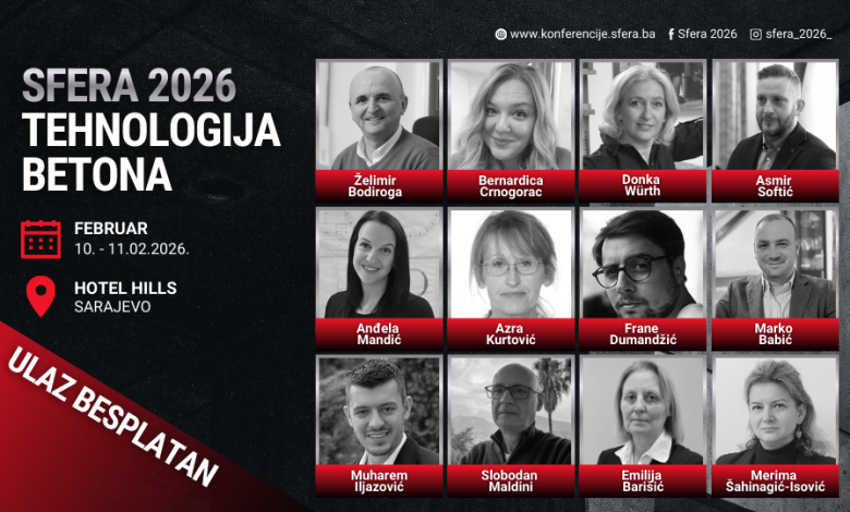Naučno stručna konferencija i sajam o temi ”Sfera 2026: Tehnologija betona” održaće se 10. i 11.02.2026. godine u Sarajevu, Hotel Hills.