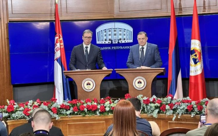 – Došao sam sa dve molbe kod Dodika, prva da zamolim njega i rukovodstvo Republike Srpske da još jedanput pozovu sve predstavnike vlasti i sve političke aktere u BiH, predstavnike EU, SAD, Rusije, Kine na razgovore, da zamolim Dodika da pokrene dijalog, razgvoore, da pokaže srpsko opredeljenje za mir, za rešavanje problema kroz dijalog. Druga stvar da zamolim Dodika i Stanivukovića i mnoge druge u Srpskoj za zajedništvo i jedinstvo po ključnim temama – poručio je Vučić.