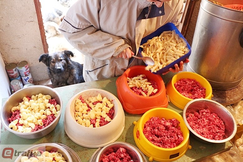 Na samom ulazu u dvorište dočekao nas je čopor pasa koji nisu oklijevali da skokom pozdrave svoje goste. Ali na prazan želudac i Svjetlanin uzvik, u istom trenutku, čoporativno, otrčali su do prostorije u kojoj se priprema hrana. Da ne bi došlo do sukoba tokom jela, jedu po dvoje na istom mjestu. Svaki pas iz čopora zna koja posuda mu pripada. Kada se ona pojavi sa hranom, psi se poredaju jedan iza drugoga i čekaju na svoj zalogaj.